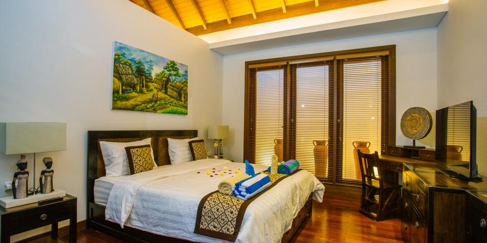 Each of the 3 bedrooms, all with their own large fully equipped bathrooms, has the following :